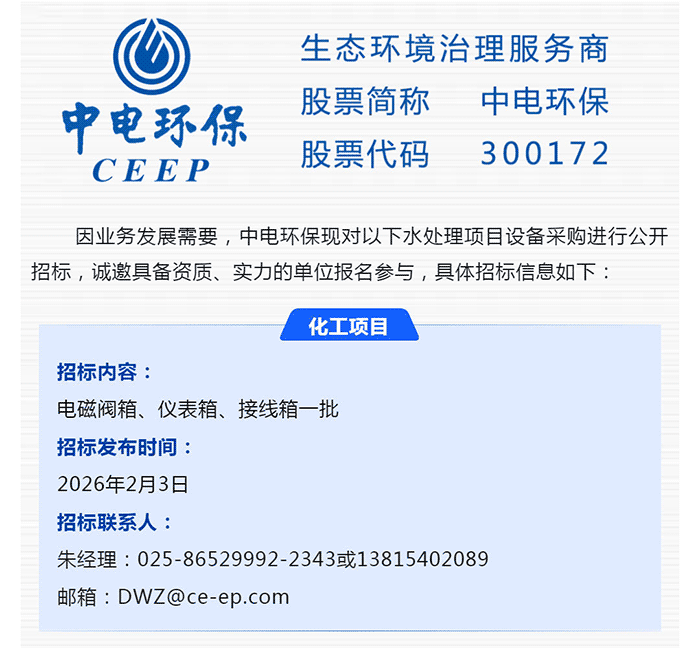 中電環(huán)保股份有限公司是南京市首家環(huán)保上市公司(股票簡稱:中電環(huán)保,股票代碼:300172),南京環(huán)保產(chǎn)業(yè)協(xié)會會長單位,國家級聯(lián)盟理事長單位,是生態(tài)環(huán)境治理服務(wù)商,主營(3+1):水務(wù)、固危廢、煙氣治理及產(chǎn)業(yè)創(chuàng)新平臺,包括:工業(yè)水處理、污水處理及水環(huán)境綜合治理;固危廢土壤、污泥餐廚垃圾處理;煙氣及VOCS治理;智慧環(huán)保;高端裝備等。